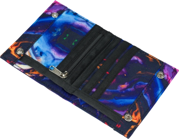 Deze studentenportemonnee is een ideale keuze voor school en vrije tijd. Dankzij de sluiting met twee drukknoopjes blijft de inhoud veilig op zijn plaats, terwijl het aparte muntvak met rits kleingeld overzichtelijk en zonder risico op uitvallen bewaart.