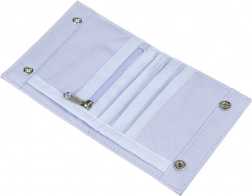 Praktische studentenportemonnee in een elegante lila kleur met sluiting met 2 drukknoopjes, een ritsvak voor muntgeld en een doordachte indeling voor bankbiljetten, kaarten en documenten – ideaal voor school en dagelijks gebruik.