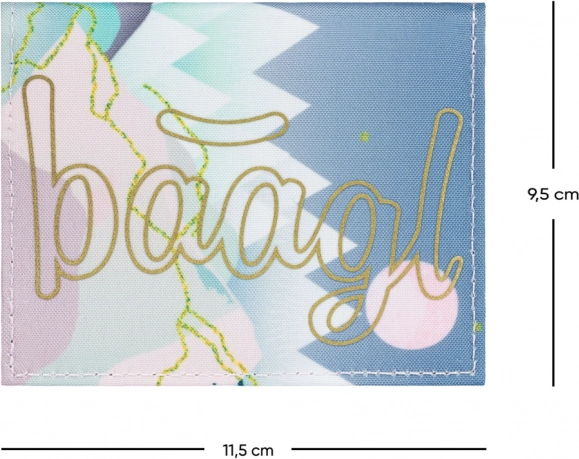 De stijlvolle Baagl Moon studentenportemonnee biedt een praktische indeling voor elke dag. Hij heeft twee drukknoopsluitingen voor veilig afsluiten, een ritsvak voor kleingeld en vakken voor kaarten en bankbiljetten. Dankzij de compacte afmetingen van 11,5 × 9,5 cm en de duurzame textiele afwerking past hij in je broekzak of schoolrugzak.