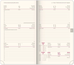 Elegante pocketagenda Twill 2025 in zwart-goud met een weekindeling, een Tsjechisch-Slowaakse kalender en de mogelijkheid tot reliëfdruk van jaartal en logo.