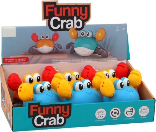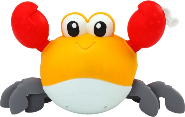 Draaiend badspeeltje Krab loopt en zwemt blauw geel