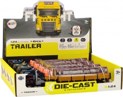 Gedetailleerd uitgewerkt model van een vrachtwagen met oplegger in schaal 1:24 brengt kinderen realistisch speelplezier rond logistiek en transport. De blauwe cabine en de bruine oplegger met afneembare zijschotten maken laden en lossen eenvoudig. Bij het indrukken van de cabine worden licht- en geluideffecten geactiveerd – motorstart en achteruitrijsignaal – voor een extra authentieke beleving.