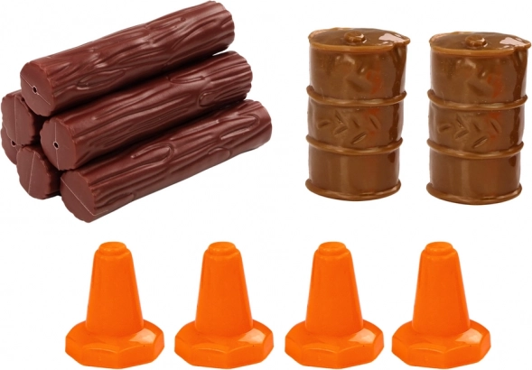 - Lading en accessoires: boomstammen, 4 pylonen, 2 vaten.