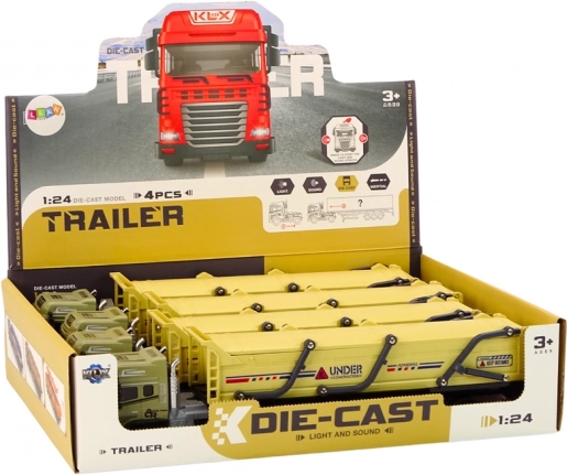 Een realistische vrachtwagen met oplegger in schaal 1:24 die jonge chauffeurs zal verrassen met zijn functionaliteit. Biedt licht- en geluidseffecten, frictie-/traagheidsaandrijving en een afkoppelbare oplegger. Het open dak en de deuren van de oplegger vergemakkelijken het laden van zand of grind en stimuleren creatief spel. Veilige uitvoering, CE-certificering en in overeenstemming met EN71.