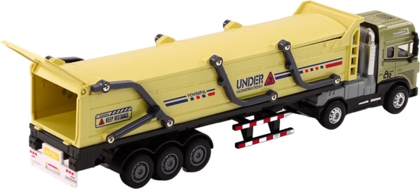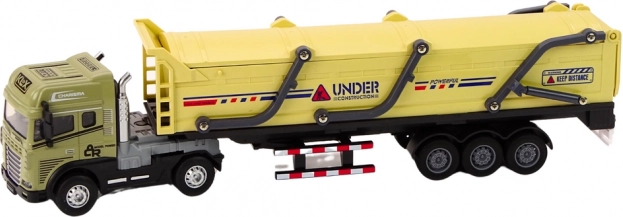De oplegger heeft een open dak en achterdeuren, waardoor het laden en lossen van materialen gemakkelijk en leuk is. De oplegger kan bovendien op elk moment worden losgekoppeld om spelscenario’s te variëren. De traagheidsaandrijving zorgt voor een soepele rit na een duw naar voren of achteren.
