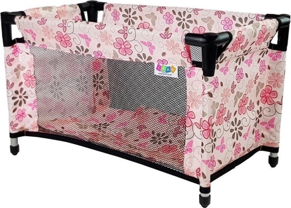 Het dekbedje en kussentje in een bijpassend bloemenmotief maken de look van het bedje af en zorgen voor nog meer speelplezier.