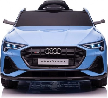 Het blauwe elektrische kinderautootje naar voorbeeld van de AUDI e-tron Sportback valt op door precieze details, zoals de voorgrille met logo, realistische verlichting en aerodynamische lijnen. Dankzij het functionele stuur en de comfortabele zitting genieten kinderen van een échte rijervaring.