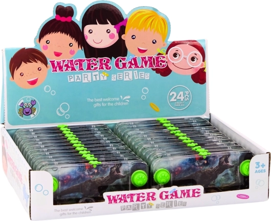Een leuk draagbaar waterspel met dinosaurusmotief dat zowel kinderen als volwassenen plezier bezorgt. Met twee knoppen laat je de ringetjes in het water bewegen en probeer je ze op de pinnetjes te plaatsen. Eenvoudig principe maar met een verslavende gameplay die handigheid, coördinatie en geduld traint. Dankzij het compacte formaat en de eenvoudige bediening is dit spel de ideale reisgenoot.
