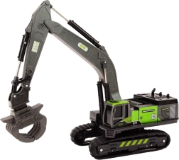 De rupsband graafmachine met metalen grijper, lepel of boor is het ideale speelgoed voor alle jonge liefhebbers van bouwmachines. Dankzij de heldere kleuren, waarbij zwart contrasteert met de groene elementen, maakt het een dynamische en aantrekkelijke indruk. De constructie is met oog voor detail gemaakt, wat het speelgoed een realistisch uiterlijk geeft.