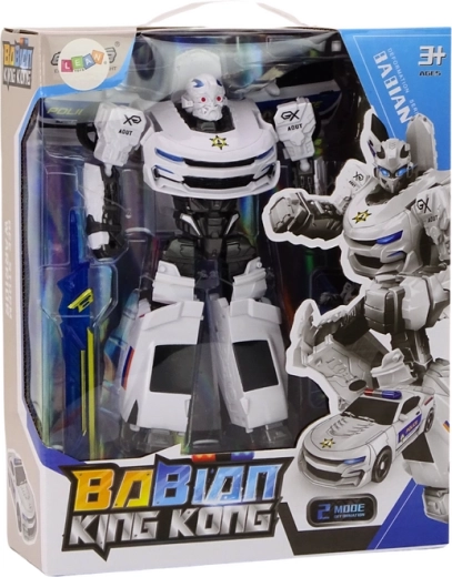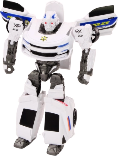 De Auto-Robot 2-in-1 is een uniek model van een politievoertuig dat elegantie en functionaliteit combineert en zowel kinderen als volwassenen zal aanspreken. In het wit, met oog voor detail, bootst hij trouw het uiterlijk van een echte politieauto na en de prestaties van een grote robot. Deze bijzondere combinatie maakt het een unieke speelgoedsensatie voor elke liefhebber van techniek en handhaving.