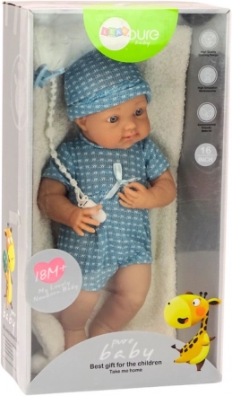 Gemaakt van materialen van de hoogste kwaliteit en veilig in gebruik, ziet de pop eruit als een echte baby, wat de kinderlijke ervaringen extra authentiek en betekenisvol maakt. De aanwezigheid van een speen aan een koordje en een zacht dekentje stimuleert het creëren van uiteenlopende speelscenario’s.