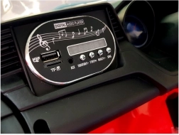 Het interieur met een verlicht dashboard en een multimediapaneel ondersteunt MP3/USB/TF. Het stuur met claxon en muziekknop zorgt voor nog meer plezier.