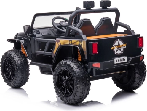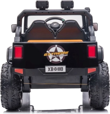 Robuuste elektrische kinderauto in elegante zwarte kleur met een realistisch offroad‑design, grote terreinbanden en een comfortabele zit voor veilig rijden. Ideaal voor buitenspelen, ontwikkeling van motoriek en zelfstandigheid. Dankzij de werkende verlichting en de gedetailleerde afwerking beleven kleine bestuurders een authentieke rijervaring.