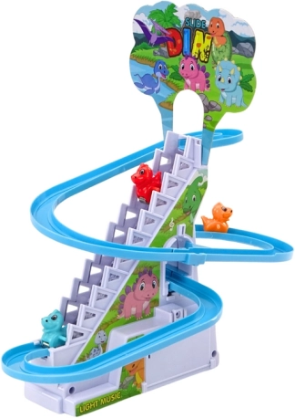Ontdek de leuke dinosaurusbaan die spel en leren combineert. Dankzij het automatische mechanisme bewegen de figuurtjes zelf over de trappen en glijden ze over de baan, begeleid door lichteffecten en een vrolijke melodie. Dit interactieve speelgoed stimuleert de fijne motoriek, het logisch denken en de coördinatie van kinderen en garandeert uren speelplezier.