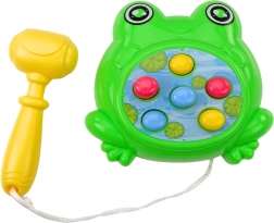 Het mini-spel in de vorm van een groene kikker is de mobiele versie van de klassieker Whac‑a‑Mole: doelwitten verschijnen onverwacht uit openingen en het is de taak om ze zo snel mogelijk te raken met het meegeleverde hamertje. Dankzij de compacte afmetingen neem je het makkelijk mee op uitstapjes, picknicks en vakanties.
