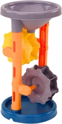 Een zandset met een molentje is onmisbare uitrusting voor elke kleine strandliefhebber of fan van spelletjes in het zand. Het middelpunt is een molentje met twee wieltjes dat een dubbele functie heeft: aan de ene kant een zeef om zand te zeven en aan de andere kant een trechter.