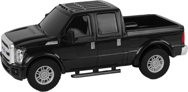 Zwarte Ford F-350 Pickup Auto is een stijlvol model met getrouwe details zoals zilveren accenten op de carrosserie en getinte ramen. Dit model wordt bewonderd door zowel kinderen als volwassen autoliefhebbers vanwege zijn realistische design.