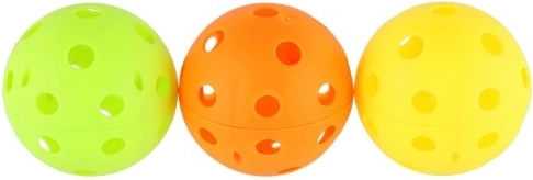 Set van vloerbalballen in drie kleuren, geschikt niet alleen voor elke vloerbalwedstrijd maar ook voor andere balsporten.