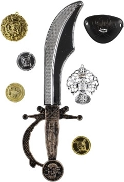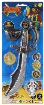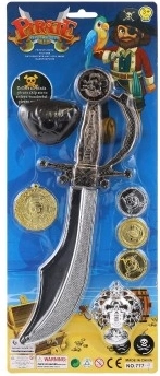 De set bevat een plastic zwaard, een ooglapje en piratenmunten – alles wat kinderen nodig hebben om direct de wereld van avonturen binnen te stappen. Perfect voor kostuums en voor dagelijks spel.