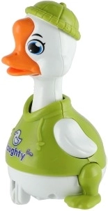 Eenvoudig vliegwielmechanisme: druk op het hoofd van het eendje en het rijdt vooruit zonder batterijen. Geweldig voor plezier en motorische ontwikkeling.