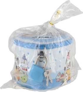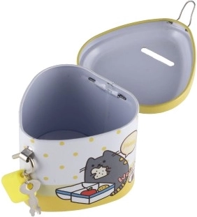 De spaarpot is klein en licht, zodat hij past op een plank, bureau of in een rugzak. De sleuf in het deksel maakt het gemakkelijk om munten in te werpen en de sleuteltjes heb je altijd bij de hand. Een geweldig cadeau voor kinderen die leren omgaan met geld.