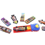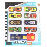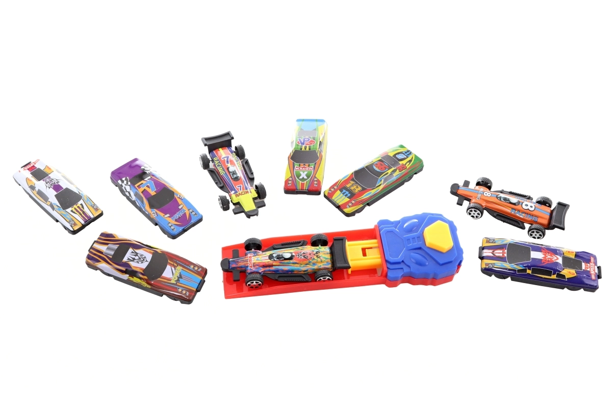 De set bevat 9 metalen auto’s en een lanceerbasis, waarmee je eenvoudig spannende racescènes creëert. De compacte afmetingen zijn ideaal voor spelen thuis en onderweg.