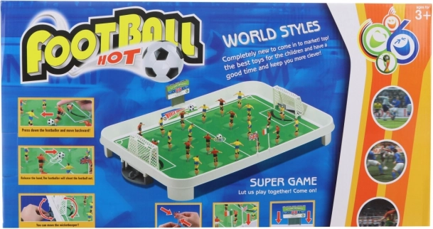 De set bevat alles wat je nodig hebt voor een complete wedstrijd: twee doelen, een bal, 22 spelers in twee kleuren, vlaggen, stickers en een scoreteller. Duurzame kunststof en een stabiele constructie zorgen voor een lange levensduur en veilig spelen voor kinderen vanaf 3 jaar.