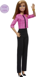 Barbie is klaar om leiderschapsverhalen te inspireren met haar elegante roze-zwarte outfit en accessoires.