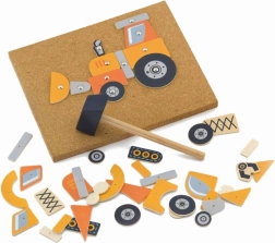 Ontdek een leuk en educatief spel in de geest van Montessori. Kinderen kunnen bouwvoertuig-voorbeelden namaken of hun eigen ideeën creëren. De onderdelen hebben afgeronde randen en voorgeboorde gaatjes, zodat ze eenvoudig en veilig op het kurken bord bevestigd kunnen worden.