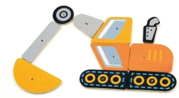 Voorbeeldkaarten inspireren kinderen om een graafmachine, kraan of vrachtwagen te bouwen en leren hen systematisch te werk te gaan.