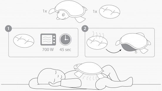 Tip: Leg het opgewarmde kussentje vóór het slapengaan in het bedje voor een aangename warmte en een veilig gevoel. Volg altijd de veiligheidsinstructies bij het opwarmen en gebruik onder toezicht van een volwassene.