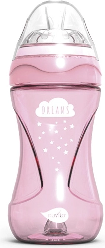 De ergonomische vorm van de fles maakt het voor het kindje gemakkelijk om vast te houden. Moeders zullen het ergonomische ontwerp van het openingsmechanisme waarderen: openen met één vinger. Het “Colic reduction”-systeem zorgt ervoor dat de lucht die de fles binnenkomt niet met de melk mengt. Zo kan de baby rustig drinken zonder lucht in te slikken.