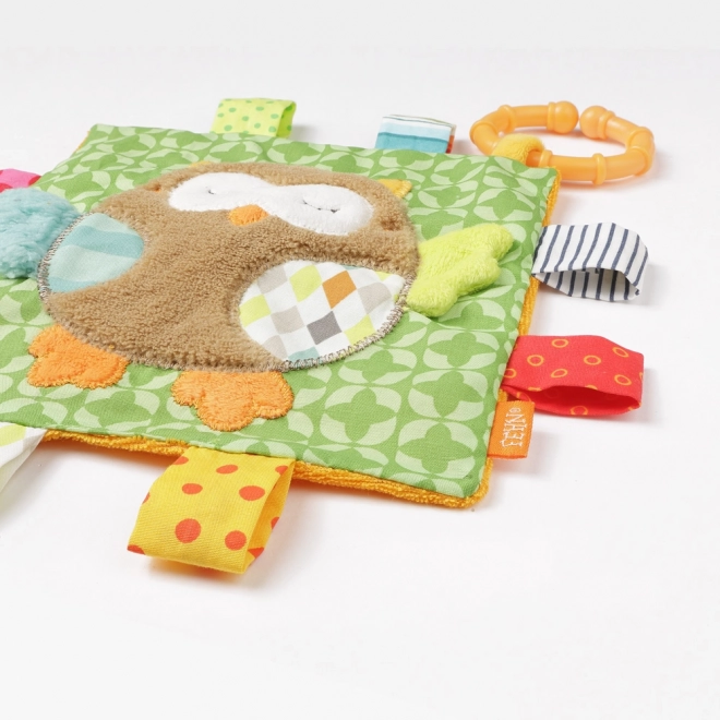 Dit knuffeldoekje valt op door de vele kleurrijke texturen die de zintuigen van het kind prikkelen. Het is een ideale keuze voor visuele en tactiele stimulatie.