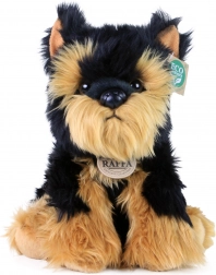 De gedetailleerde kleuring en vacht geven de terriër een levendige uitstraling. Het zachte materiaal voelt prettig aan en is ideaal voor rustgevend knuffelen.