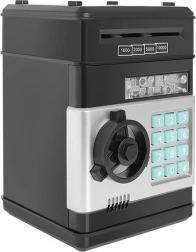 Leer kinderen slim met geld omgaan met deze elektronische spaarpot in de vorm van een mini kluis. Je kunt er bankbiljetten en munten in doen, hij opent na het invoeren van een viercijferige PIN en biedt licht- en geluidseffecten, inclusief een Engelse stem. Ideaal voor kinderen vanaf 6 jaar – een leuke en veilige manier om sparen te leren.