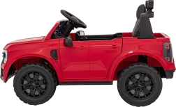 We presenteren de Ford Ranger elektrische kinderauto in een opvallende rode kleur, met realistische details zoals deuren die open kunnen, LED verlichting en een zwart lederen zitje. Ontworpen voor kleine bestuurders biedt hij echte rijervaringen dankzij de robuuste constructie en krachtige 2x35W motoren.