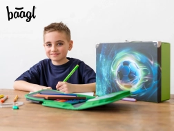 Opvouwbare schoolkoffer Baagl is de ideale keuze voor kleine voetbalfans, dankzij het robuuste ontwerp en het stijlvolle voetbalthema.