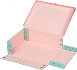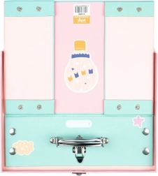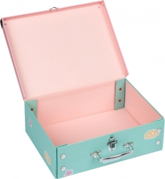 De koffer heeft een metalen handvat en sluit met een klassieke gesp. Het unieke drukknoopsysteem maakt het eenvoudig om hem in en uit elkaar te vouwen, wat het opbergen vergemakkelijkt wanneer hij niet wordt gebruikt. Ideaal voor kinderen en op reis, en zorgt voor een veilige en leuke manier om hun favoriete speelgoed of schoolspullen te vervoeren.