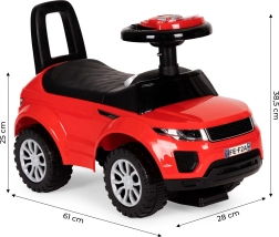 Op het stuur zitten 3 knoppen die verantwoordelijk zijn voor het afspelen van geluiden. De loopauto heeft 3 melodieën en een claxon geprogrammeerd. Dankzij deze functie wordt het spelen nog leuker.