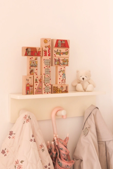 Met de bouwset Klein huis van Milaniwood kunnen kinderen talloze verschillende huisjes vol details maken. Elk huisje kan uniek zijn, met figuren die het alledaagse leven beleven te midden van leuke kleine diertjes, bloemen en andere objecten in aangename kleuren. Oudere kinderen kunnen hun creativiteit verder ontwikkelen door hun eigen ideeën op de achterkant van de blokken te tekenen.