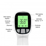 De thermometer is multifunctioneel – naast de lichaamstemperatuur meet hij ook de temperatuur van objecten, bijvoorbeeld een flesje melk. De bediening is intuïtief en omvat automatisch uitschakelen na 10 s, omschakelen tussen °C/°F en geheugen voor 20 metingen om de toestand te volgen. In de verpakking zitten ook 2× AAA‑batterijen en een praktische opbergzak.