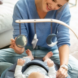 Geef je baby interactieve spel met de houten speelboog Doomoo Seat'n Swing. Speeltjes in lichte en donkere contrasten trekken de aandacht van kinderen, terwijl hun knisperende geluid de gehoorszintuigen stimuleert.