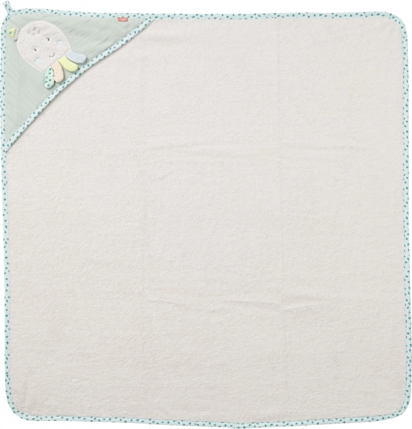 Kinderen kunnen zich veilig in de handdoek nestelen - de schattige capuchon met een octopus houdt het hoofdje warm. Zelfs dagelijks gebruik en vaak wassen schaden het pluche zeedier noch de zachte badponcho.