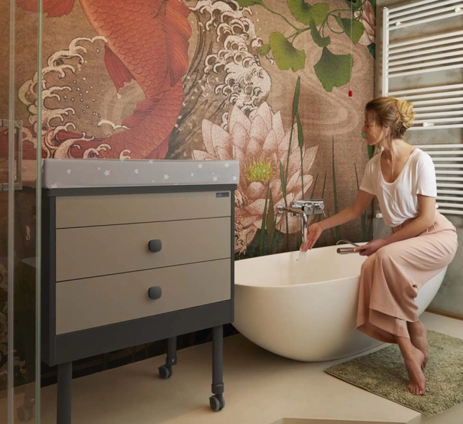GROWI 2-in-1 is een doordacht meubelstuk dat meegroeit met je kind. In de verschoonstand heb je een geïntegreerd babybadje met 2 anatomische zitjes (voor 0–6 en 6–12 maanden), een stop en afvoer voor snel leeglaten van het water. Na de verschoonfase bouw je de commode eenvoudig om tot een comfortabele kinderbank met tafeltje en opbergruimte.