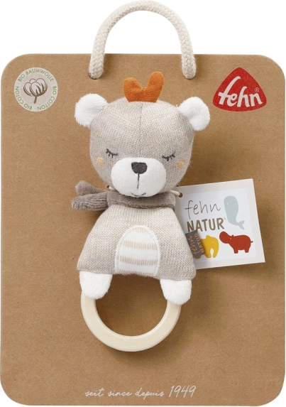 Pluchen teddybeer met houten houder, FehnNatur 2.0