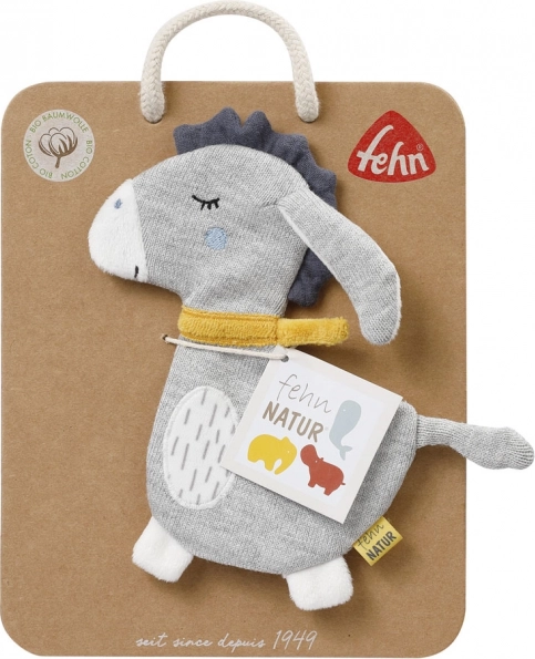 Het gebreide lichaam van de ezel is gemaakt van biologische katoen en binnenin zit knisperpapier dat geluid maakt wanneer je erin knijpt. Het grijpspeeltje ondersteunt op speelse wijze het gehoor, de grijpreflex, de tastzin en de fijne motoriek van de baby. Het praktische formaat maakt het mogelijk de ezel overal mee naartoe te nemen.