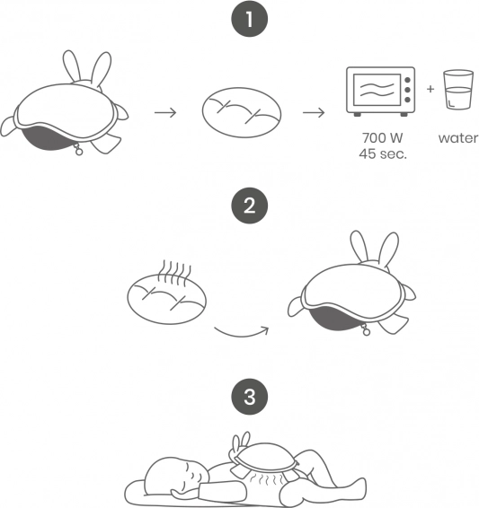 Het uitneembare kussentje warm je eenvoudig op in de magnetron volgens de instructies. Snel klaar voor direct comfort.
