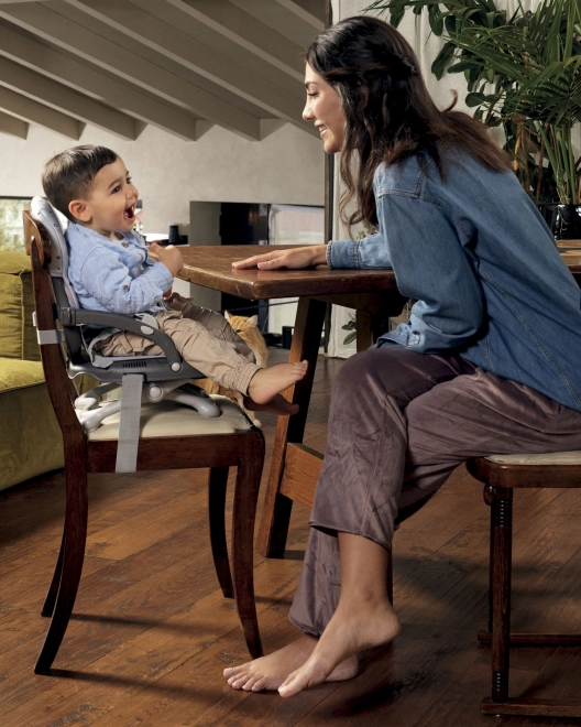 Kies tussen de modus met dienblad voor jongere kinderen en het losse zitje voor oudere – altijd comfortabel samen aan tafel.