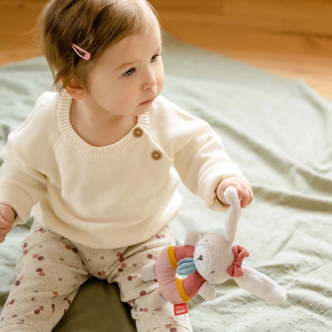 Wat dit speeltje uniek maakt, is de combinatie van interessante materialen en stimulerende geluiden die de aandacht vasthouden en de nieuwsgierigheid van kinderen prikkelen. Het zachte konijn is altijd klaar om mee te spelen en te knuffelen.