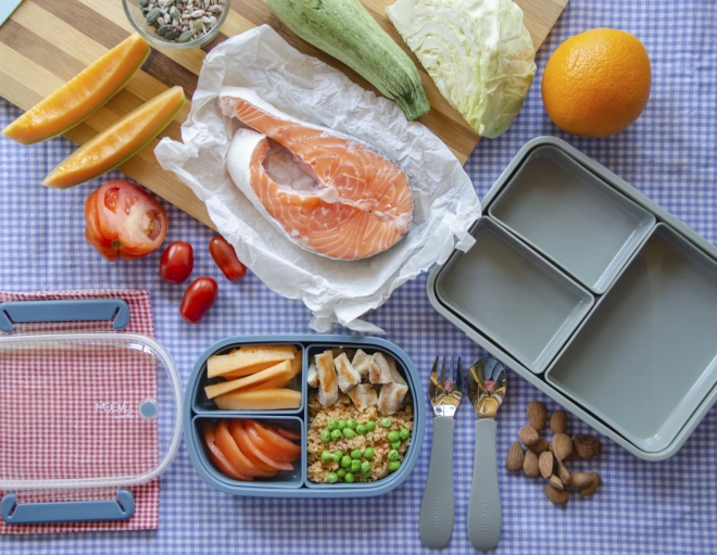 Siliconen eetset voor kinderen met eekhoornmotief, 9-delig, donkerblauw